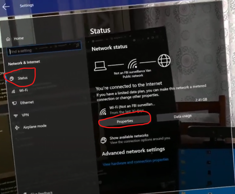 – Retournez dans les paramètres, cliquer sur « Internet et réseau » ensuite dans « Etat » vous devez voir votre connexion wifi , ici vous devez cliquer sur « Propriété ». Dans cette nouvelle page, faite maintenant défiler les informations jusqu’à trouver le champ Adresse IP v4, c’est la série de chiffre qui nous intéresse.