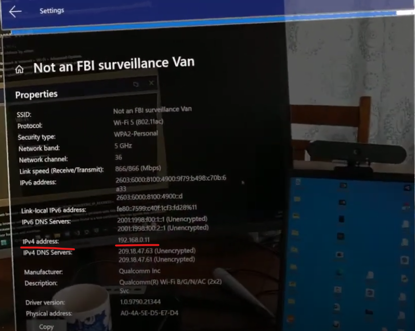 – Assurez-vous que votre ordinateur et l’hololens soient sur le même réseau internet